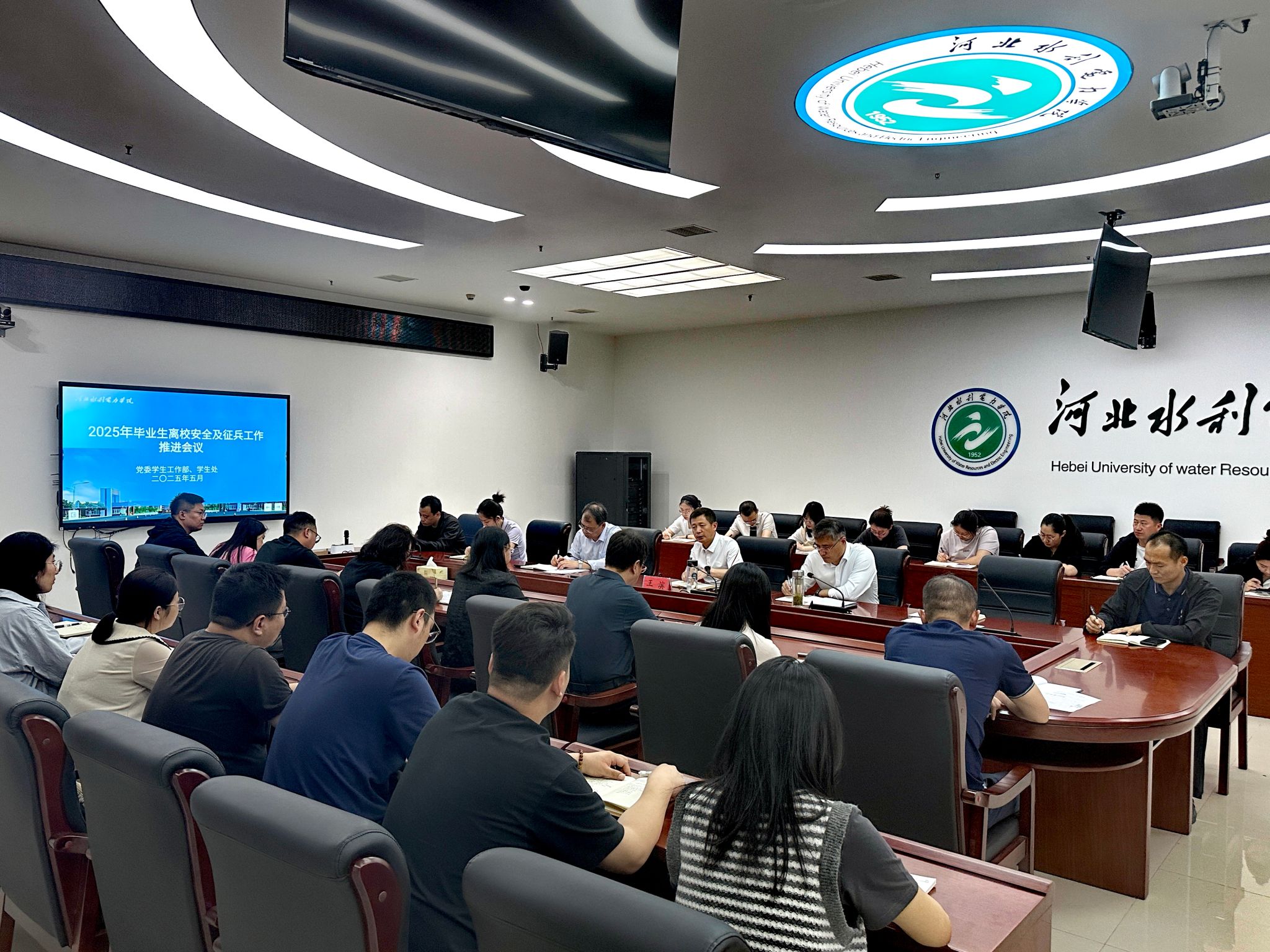 为顺利推进2025届毕业生的毕业离校及征兵工作,5月16日上午,我校在弘文守正楼科技特派员会议室召开2025届毕业生离校安全及征兵工作推进会。党委副书记、校长王滨,副校长杨凯出席会议并讲话,会议由党委学生工作部部长、武装部部长郑宝民主持。王滨就做好毕业生工作提出四点意见。一是高度重视,把毕业安全工作放在现阶段学生工作的首位,尽职尽责做好末端落实。二是压实责任,细致细心做好毕业生离校各个环节的工作,提供便捷便利的毕业服务。...