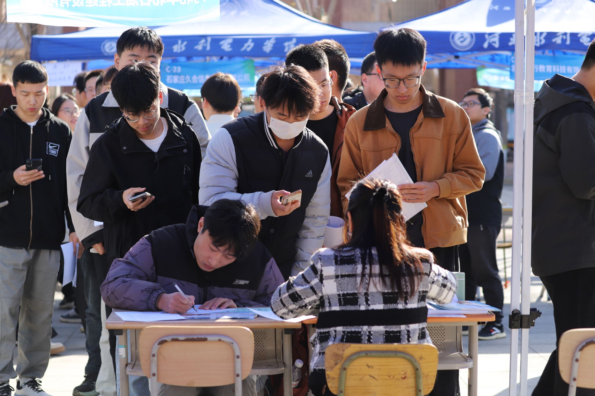 为深入贯彻落实教育部、省教育厅关于开展2025届高校毕业生“春季促就业攻坚行动”部署要求,抢抓就业关键期,3月22日上午,我校在图书馆前广场成功举办2025届毕业生春季校园双选会。本次双选活动以“精准对接促就业,校企协同育人才”为主题,吸引了来自京津冀、山东、吉林等省市的314家企业参会,现场提供就业岗位8500余个,覆盖水利、电力、建筑、智能制造、经贸等多个领域,共有1964人达成就业意向,为毕业生搭建了高效的双向选择平台。