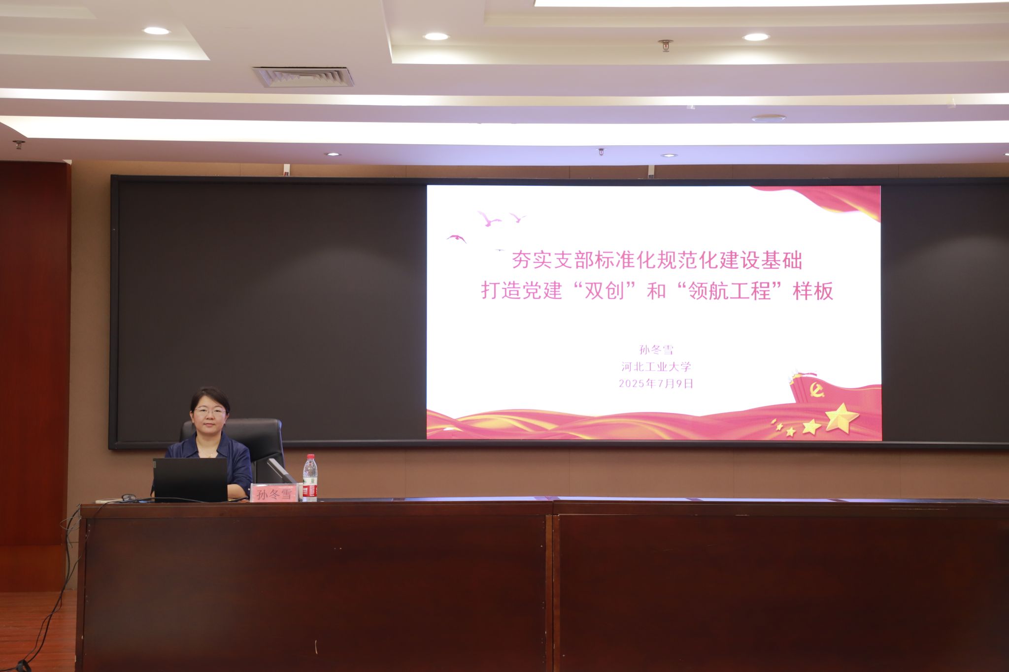 全国样板支部支部书记、河北工业大学党委组织部科长孙冬雪作了题为“夯实支部标准化规范化建设基础,打造党建双创和领航九游(中国)公司样板”的讲座,聚焦党支部建设的关键环节,系统解析了“党支部标准化规范化建设”“党员发展与教育管理”“三会一课”等组织生活制度落实以及“党建双创典型经验”四个核心内容。讲座深入分享了打造高质量样板支部的实践路径与宝贵经验,为提升我校基层党建工作科学化、规范化水平提供了坚实的理论支撑和实践范例。