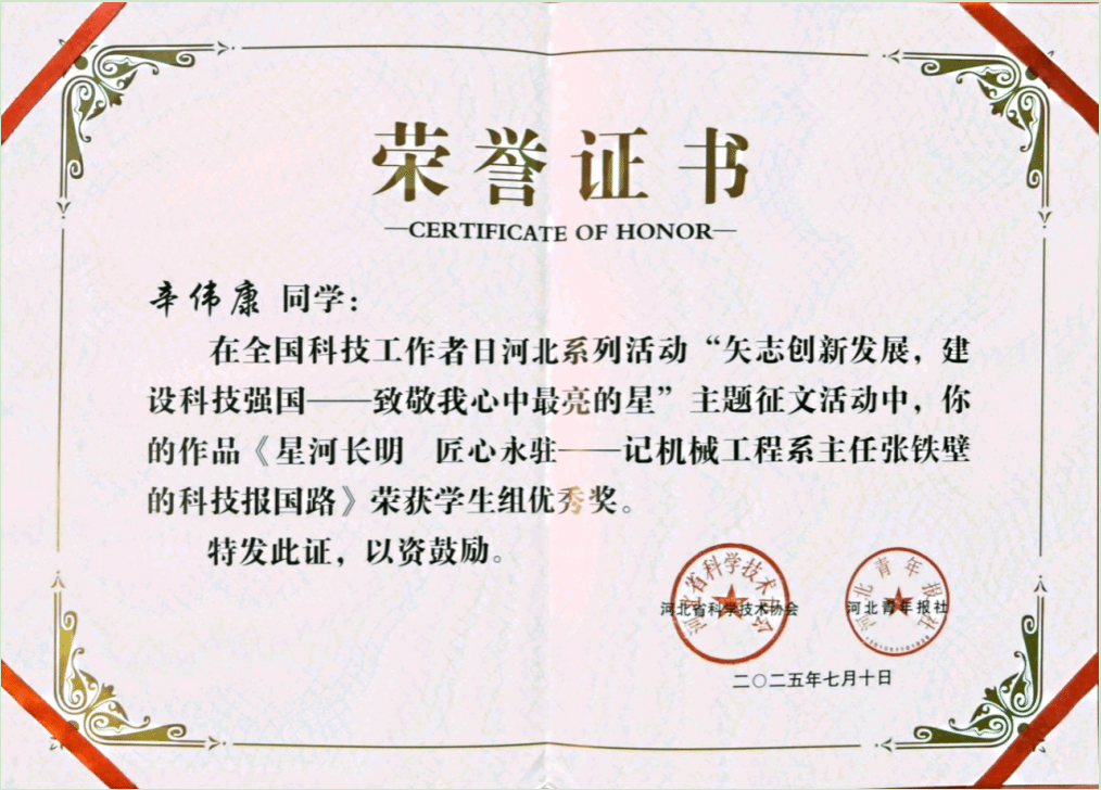 近日,河北省科学技术协会与河北青年报社联合公布的全国科技工作者日主题征文活动评选结果揭晓,我校师生表现出色,最终评选出社会组一等奖1个,学生组一等奖2个,三等奖1个,优秀奖2个。